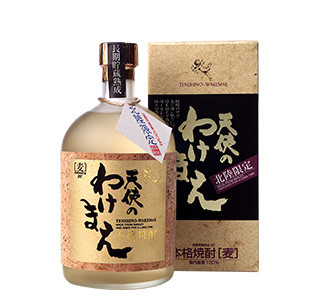 国内産100%の大麦を使用し樽熟成させ、規定ギリギリまでの色、香りにこだわりました。コンセプトは「天使のささやき」になれた北陸の食通が、もっと高価な焼酎が欲しいと思っていた所、何処からともなく天使が舞い降り、「それでは、天使の世界に伝わる秘伝の焼酎を分けてあげよう」と言い、「天使のわけまえ」をくれました。その焼酎を味わってみると、言葉にあらわせない程、味、ウッディな香りが心休まる美味しい焼酎でした。